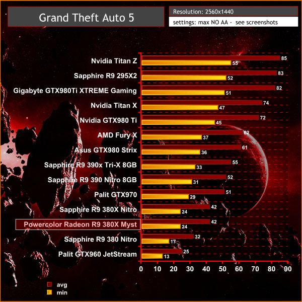 We found some intensive sections of the Grand Theft Auto 5 world and tested each card multiple times to confirm accuracy. The game demanded around 3.5GB of GPU memory at 1440p and just over 4GB at 4K.
