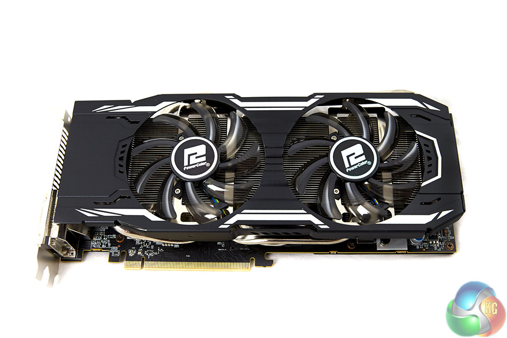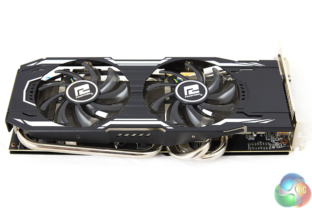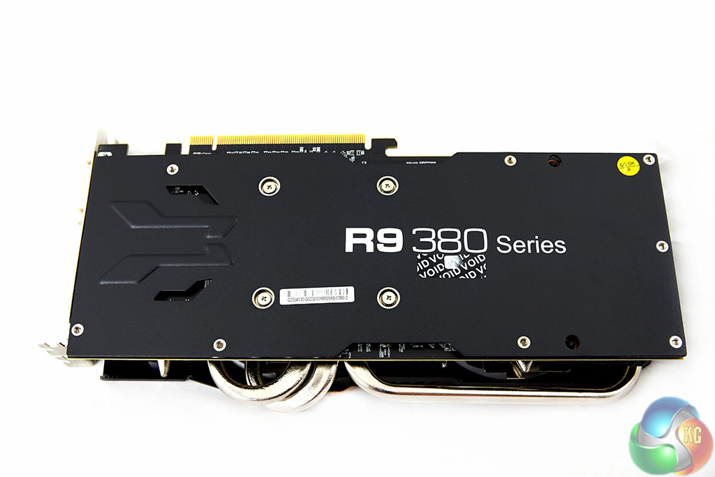 The Powercolor PCS+ 380X Myst Edition is a very attractive card, the two tone black and silver accenting works well, and they haven't skimped on the components – adding a back plate as well to improve cooling and PCB protection. Thick heat pipes are visible running along the top of the PCB.