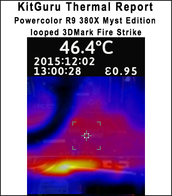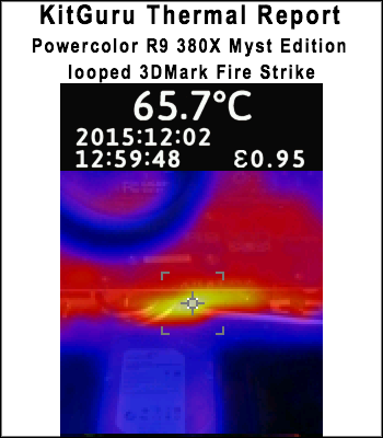 The biggest hotspot on the card is on the heatpipe which is exposed along the top of the GPU. These heatpipes hit around 66c under extended load – which is still a very good result indeed.