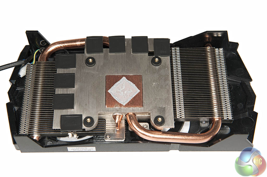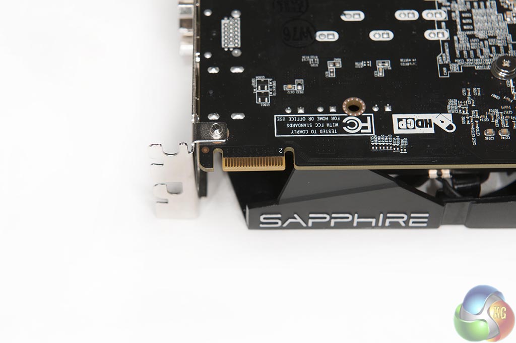 Sapphire are using a cooler with two thick heatpipes running into separate racks of aluminum fins on either side of the core contact point. SKHynix GDDR5 memory is used on this board.