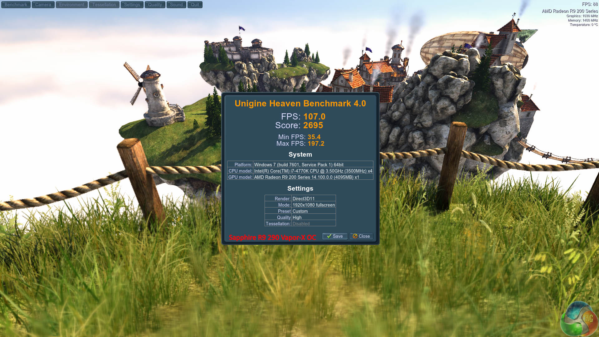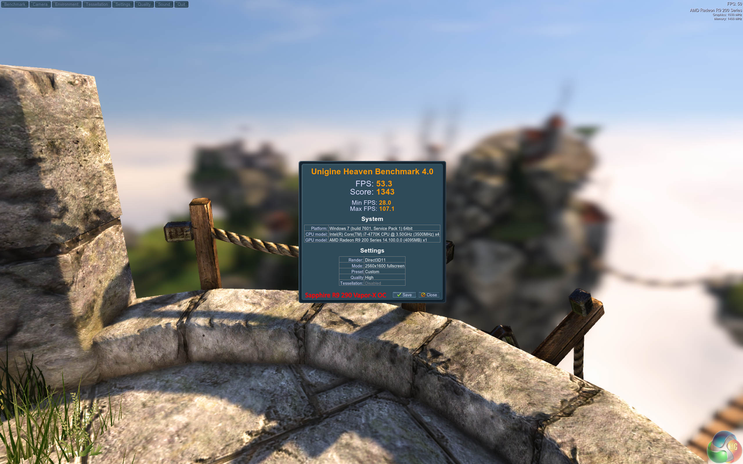 Heaven Benchmark is a DirectX 11 GPU benchmark based on advanced Unigine engine from Unigine Corp. It reveals the enchanting magic of floating islands with a tiny village hidden in the cloudy skies. Interactive mode provides emerging experience of exploring the intricate world of steampunk.