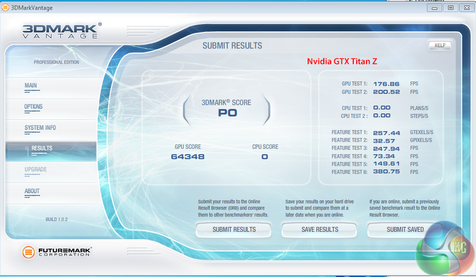 We would put this down to a lack of driver optimisations for this older benchmark once we move to 4 GPU cores. We would imagine the two Titan Z cards will score better in the upcoming Direct X 11 Futuremark benchmarks.