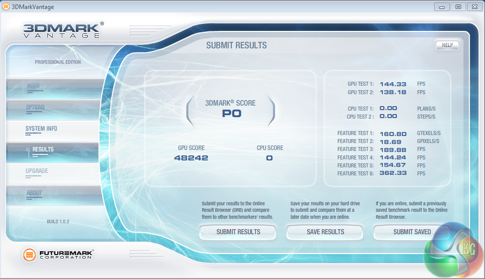 Futuremark released 3DMark Vantage, on April 28, 2008. It is a benchmark based upon DirectX 10, and therefore will only run under Windows Vista (Service Pack 1 is stated as a requirement) and Windows 7. This is the first edition where the feature-restricted, free of charge version could not be used any number of times. 1280×1024 resolution was used with performance settings.