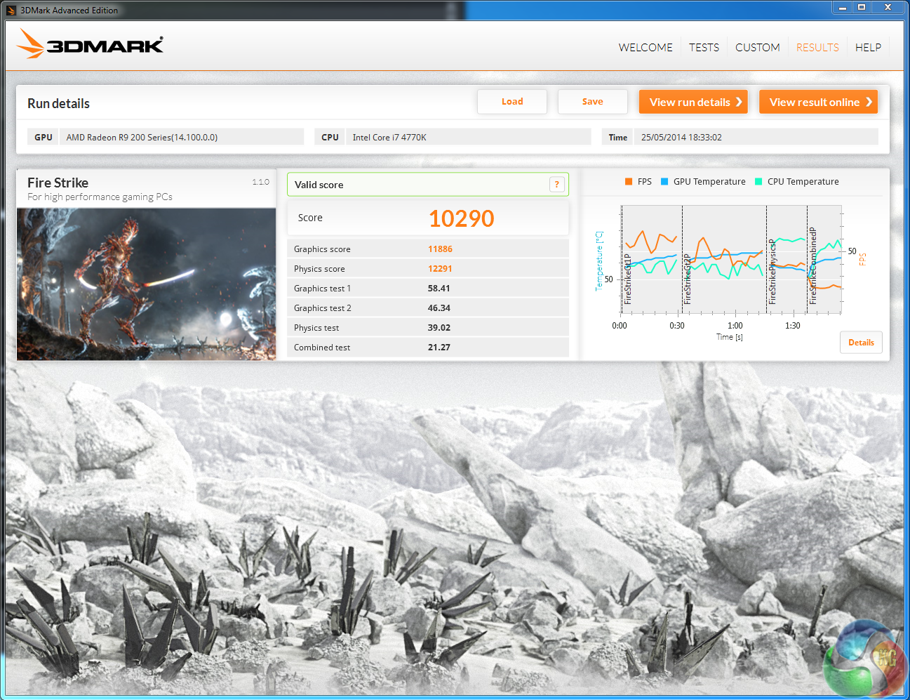 The Sapphire R9 290X Vapor-X OC is the highest performing single GPU AMD card we have tested so far, scoring 11,886 points – slotting in just behind the Palit GTX 780 Ti Jetstream OC.