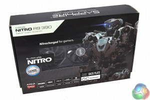 An overview of the Sapphire R9 390 Nitro 8GB Rev 2 w/ Backplate. It is built on the 28nm process, has 64 ROPs, 160 Texture units, and 2560 unifed shaders. The core is clocked at 1040mhz, 30mhz faster than ‘Revision 1' which we reviewed in July. The 8GB of GDDR5 memory runs at 1,500mhz, or 6Gbps effective – an improvement over the R9 290, which on the reference design was set at 5Gbps effective.