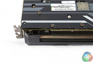 The card is equipped with a dual link DVI-D connector, three DisplayPort 1.2a connectors and a single HDMI 1.4a connector. Sadly, no support for the new HDMI 2.0 standard – which means you can’t get 4K 60hz from this connector. This is something I do depend on myself as I use a 4K Sony TV for my gaming (which has only HDMI ports).