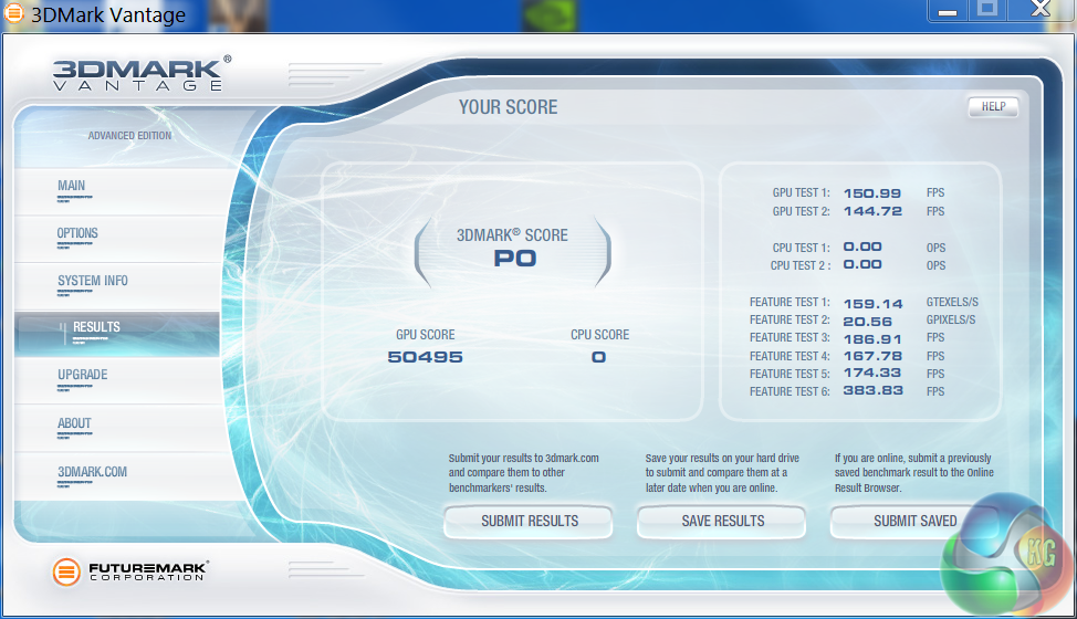Futuremark released 3DMark Vantage, on April 28, 2008. It is a benchmark based upon DirectX 10, and therefore will only run under Windows Vista (Service Pack 1 is stated as a requirement) and Windows 7. This is the first edition where the feature-restricted, free of charge version could not be used any number of times. 1280×1024 resolution was used with performance settings.