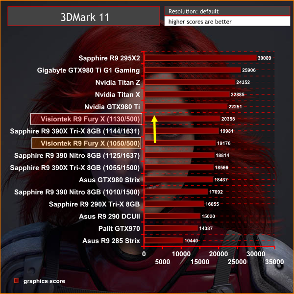 The graphics score of 19,176 points is further increased to 20,358 points after manually overclocking the core to 1,130mhz. Even with the manual overclock, the score falls around 2,000 points behind the reference clocked GTX980 Ti.