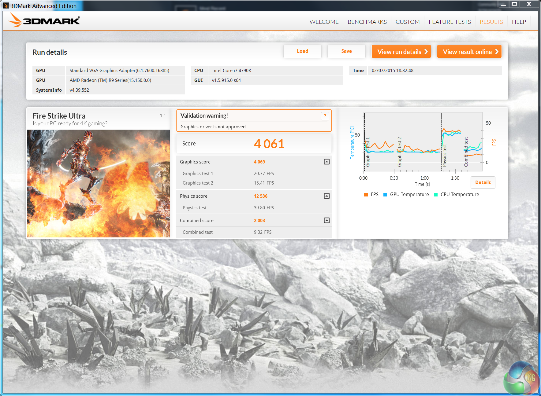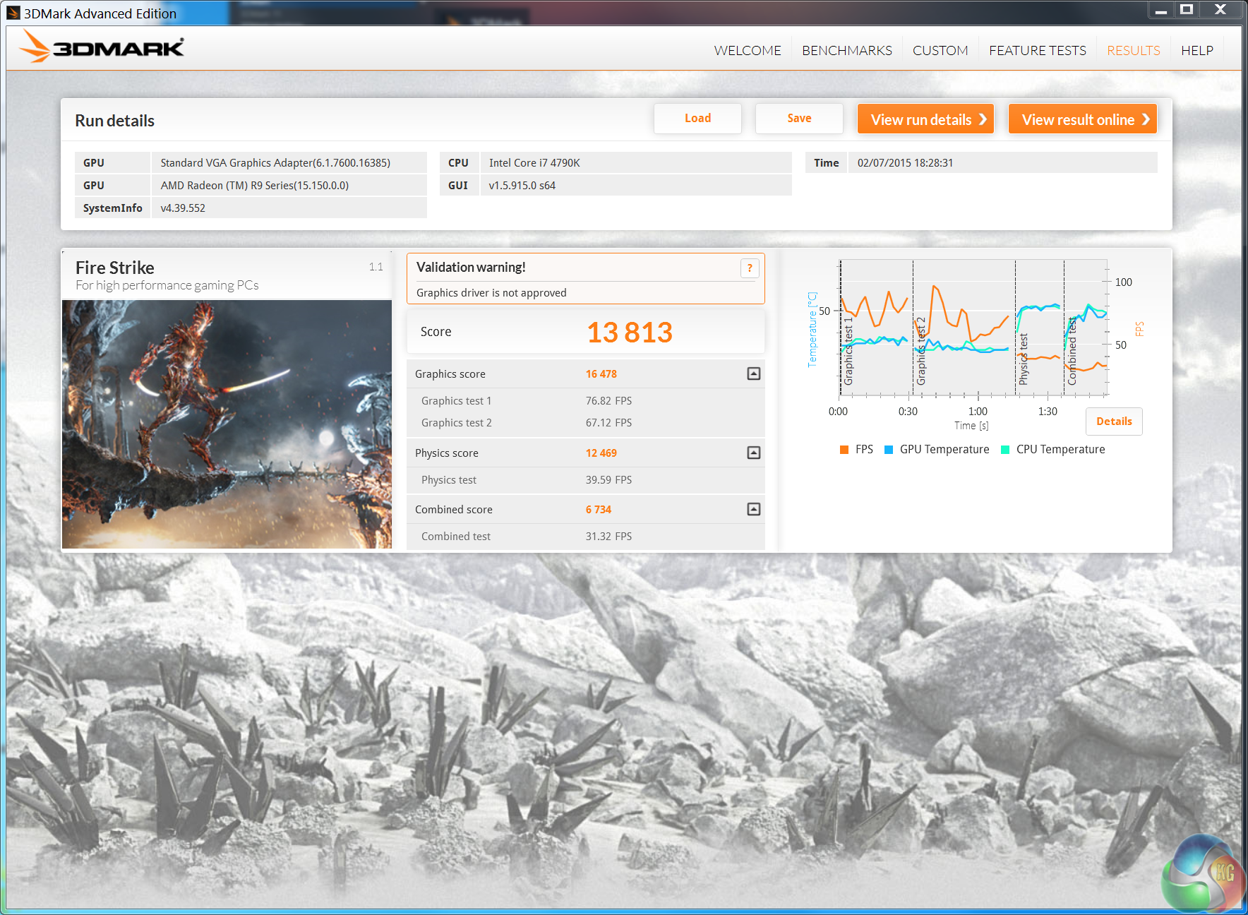 The Fury X 4GB scores well in the latest Direct X 11 benchmark – 3,850 points- placing it just behind the reference GTX980 Ti. When overclocked to the limit the score increases to 4,069 points, just ahead of the reference clocked GTX980 Ti and almost level with the reference clocked Titan X. The Gigabyte GTX980 Ti G1 gaming on the other hand scores 4,401 points, putting it way ahead of the manually tweaked R9 Fury X.