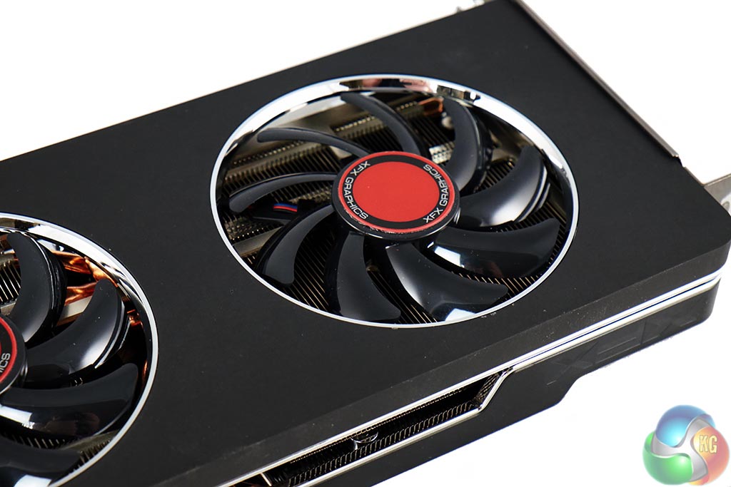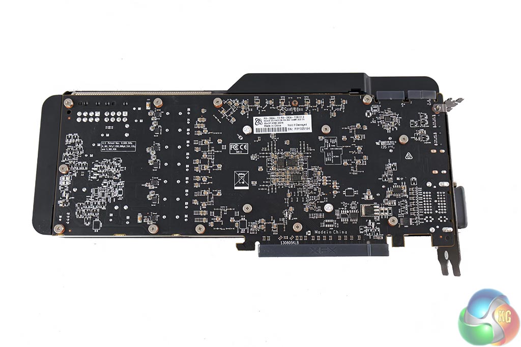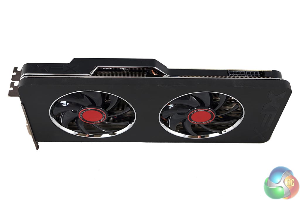 This is certainly an eyecatching card. The matt black colour of the colour is enhanced with the silver/chrome style edges and red stickers on the fans. XFX have ensured the black PCB matches the overall appearance.