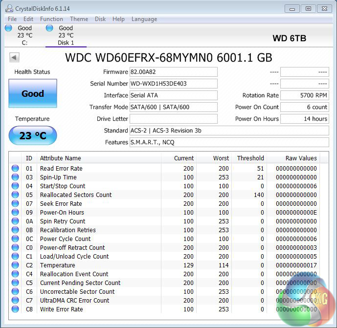 The standard slow spin speed is 5,400rpm and in the past Seagate has used 5,900rpm in Barracuda LP but according to CrystalDiskInfo the 6TB Red spins at 5,700rpm.
