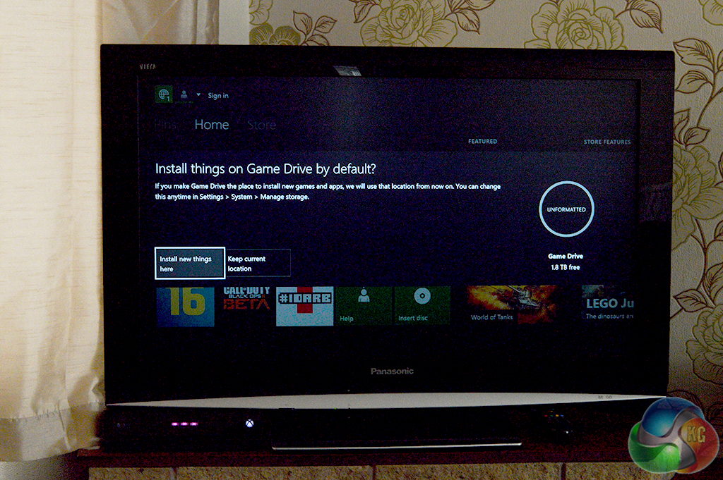 Upon plugging the Game Drive in, you will be greeted with this screen, which will ask you to format the drive and get it all set up for the Xbox One console.