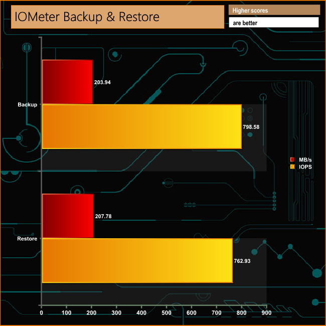 Our backup/restore tests confirm the official 200MB/s transfer rate with reads at 203.94MB/s and writes at 207.78MB/s