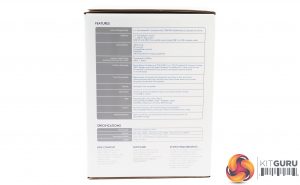 One side of the box has a full sized image of the front of the unit, while the other side has a comprehensive feature panel, a specification panel and lists of box contents, downloadable software options and system requirements.