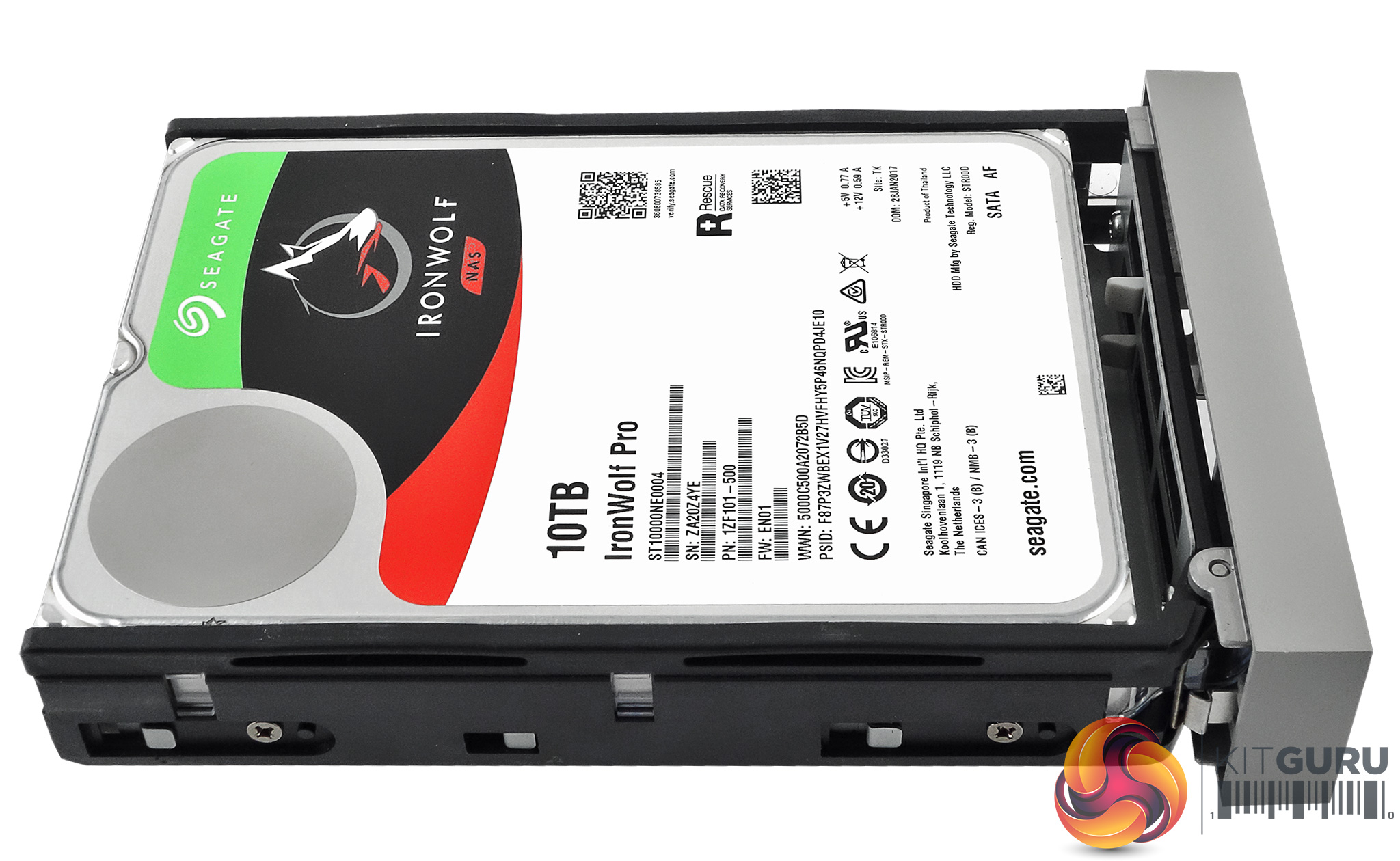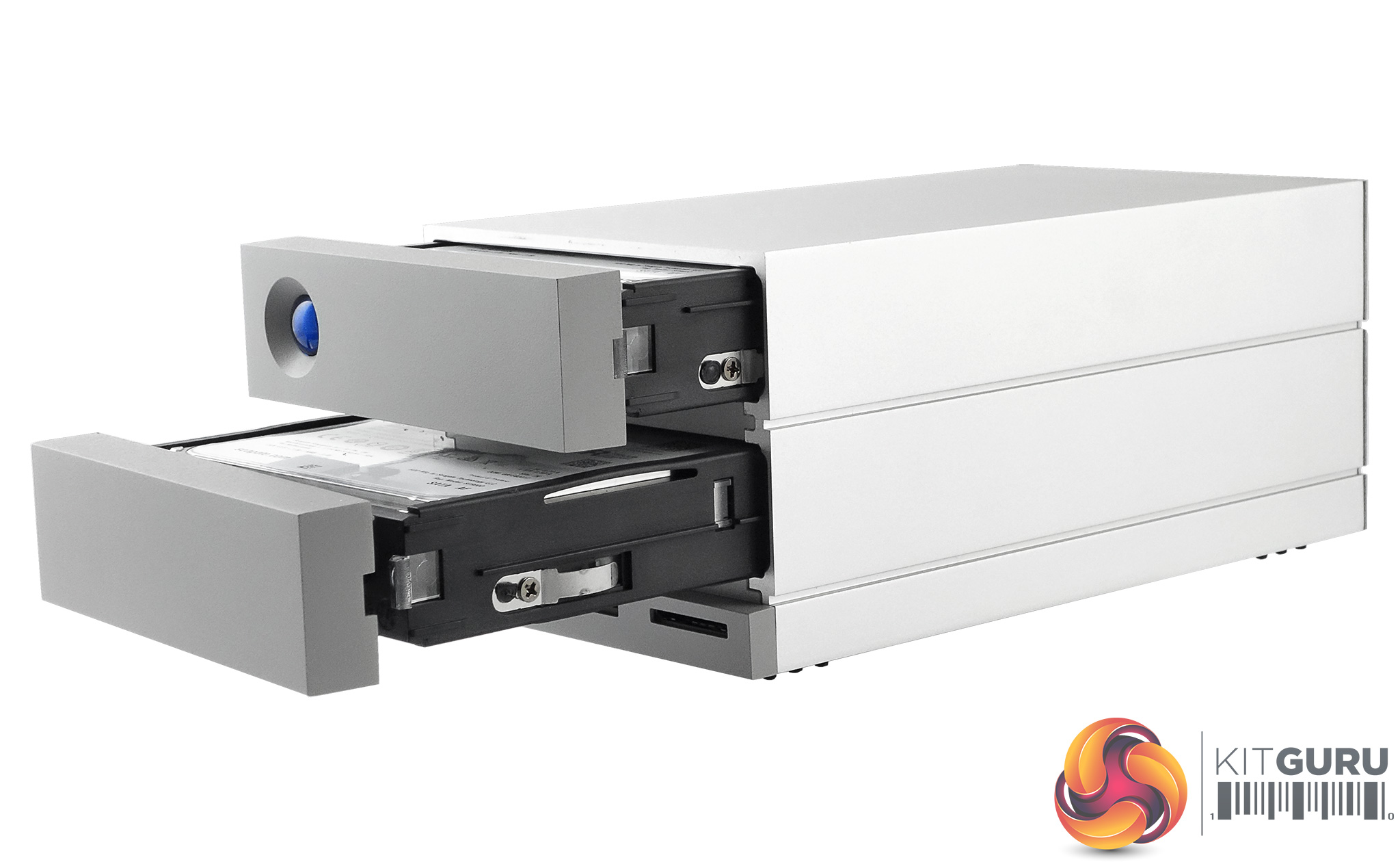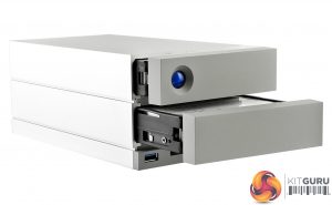 The drive doors have Blue indicator LEDS built into the side of them and the drive bays support hot swapping of drives. The 20TB version of the 2Big Dock comes with two Seagate IronWolf Pro hard drives installed. These are 7 platter (disc) designs with a 7,200rpm spin speed and 256MB of cache.