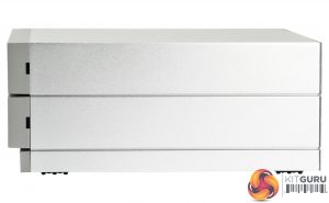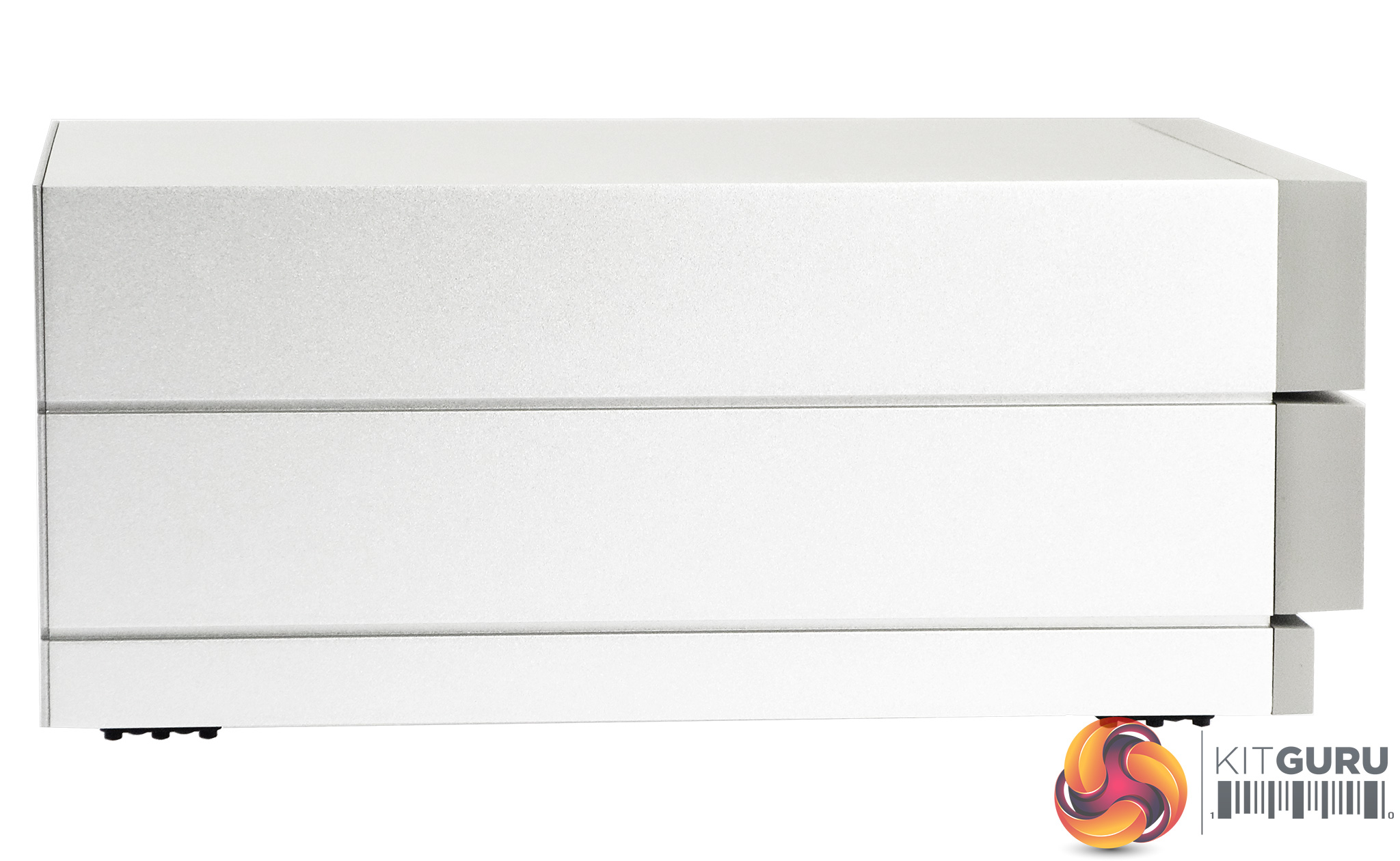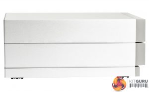 To the left of the grill is the power button which also doubles up as a confirmation button for RAID configurations. The problem with this idea is that having a semi recessed button is fine if the unit is on a desk, but if its sitting on a shelf and you have to fumble around trying to find it you will end up cursing the designer especially as if you are using it as the RAID confirmation button as the RAID Manager software doesn't give you that much time to confirm any changes. But to be fair to LaCie you not going to be swapping RAID types around too often in everyday situations.