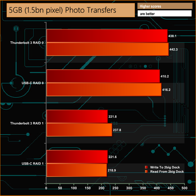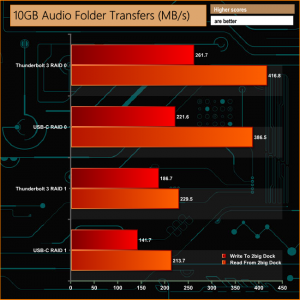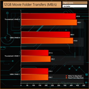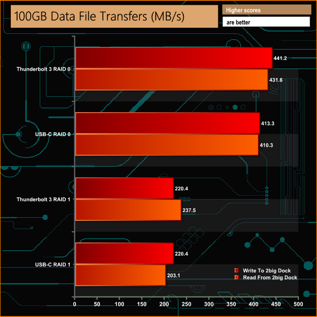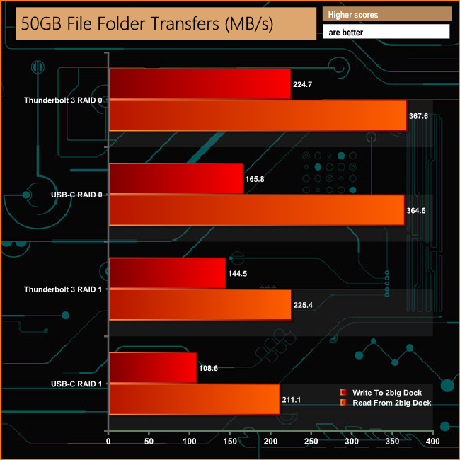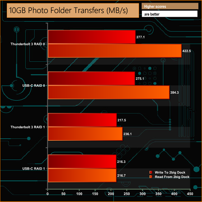 The 2big Dock dealt with our real life test file transfers without any problems, showing strong performance throughout the tests.