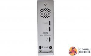 The build quality of the d2 Thunderbolt 3 is very good. The enclosure has been constructed from one single sheet of aluminium, which acts like a heat sink, helping the pull away heat from the vertically mounted hard drive. The base is covered in small rubber feet to lessen any effect of drive vibration.
