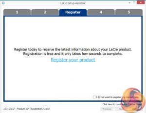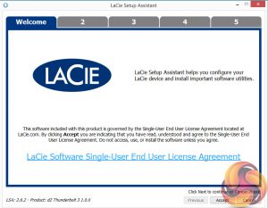 LaCie's Setup Assistant utility comes pre-loaded on the drive. With it, you can partition the drive to be used by a Windows or Mac system or even make two partitions to accommodate both systems. Also bundled on the drive are a direct link to download Adobe Reader and LaCie's own Genie Timeline backup software.