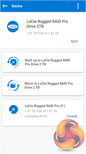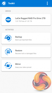 LaCie's Tookit allows you to simply set up the drives in a Mirror (RAID1) and create backups or restore data. This can be done with a single click or if you want to choose another folder other than the default one for the backup/restore data you have a custom option. It also automatically copies the content from an SD Card.
