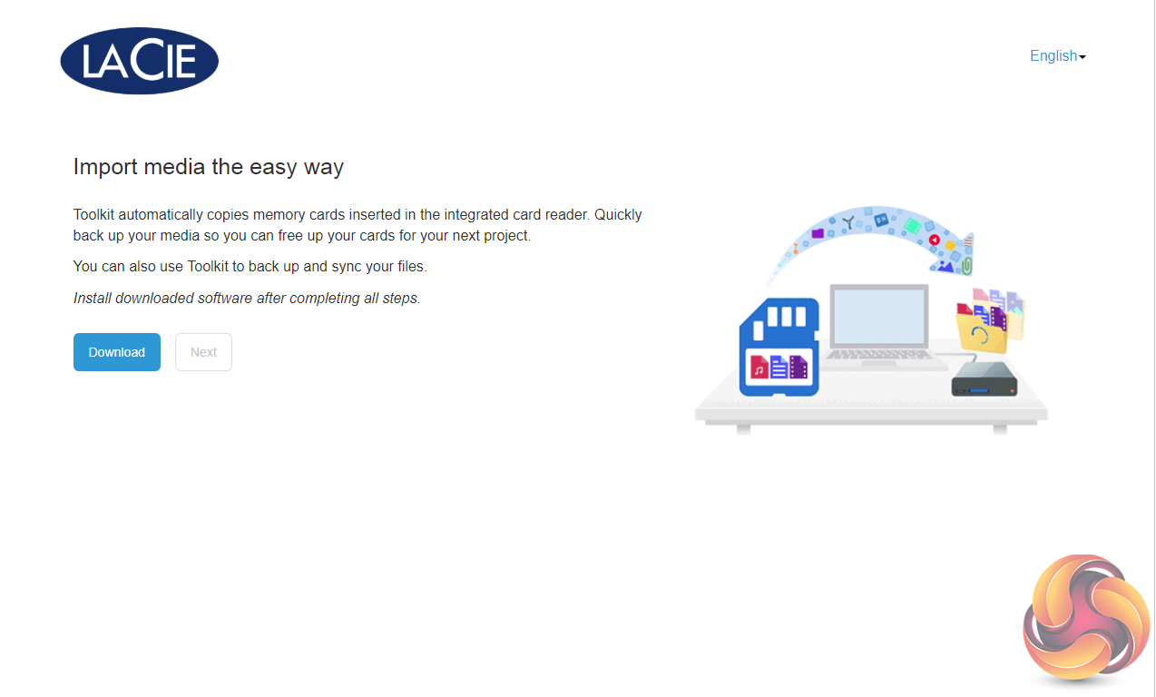 LaCie's Tookit allows you to simply set up the drives in a Mirror (RAID1) and create backups or restore data. This can be done with a single click or if you want to choose another folder other than the default one for the backup/restore data you have a custom option. It also automatically copies the content from an SD Card.