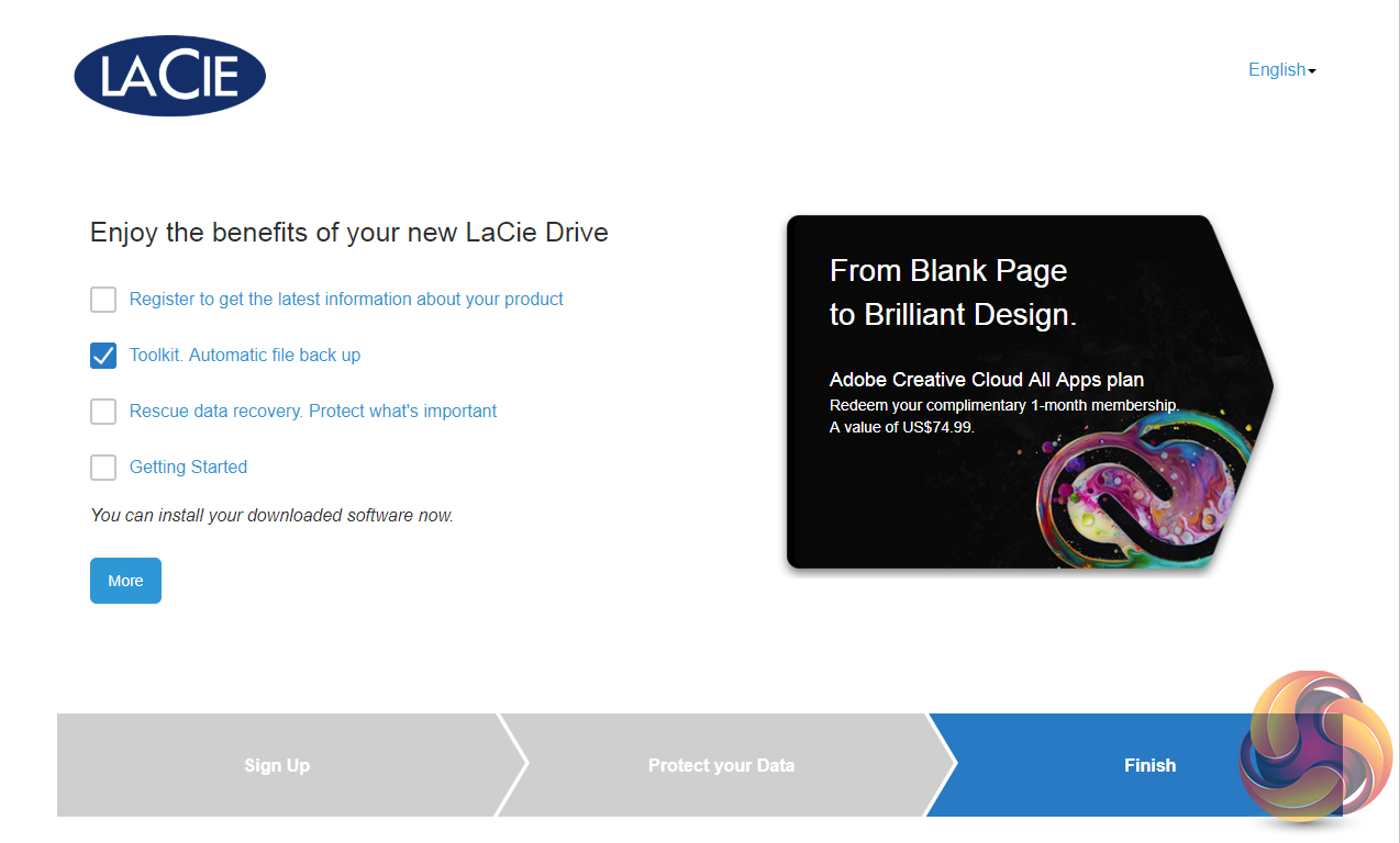 When you plug the drive in for the first time a registration page pops up which also allow you to load the LaCie Toolkit app.