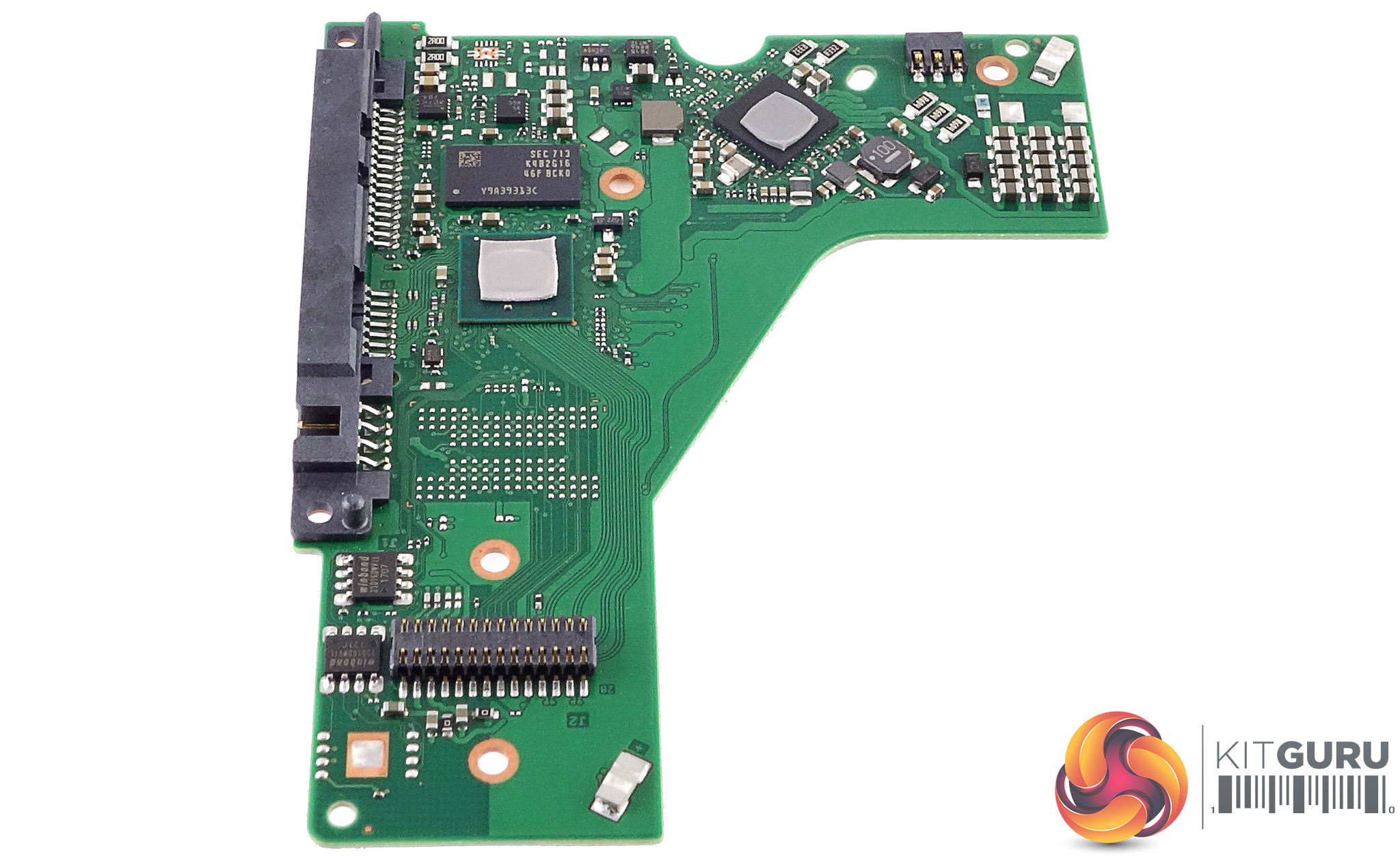 Try as we might we couldn't remove the thermal pad on top of the drive controller without ruining it but if it's the same as the one controlling the 10TB BarraCuda Pro then it's an Avago TTB8100 IC.