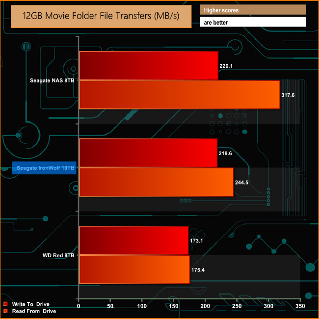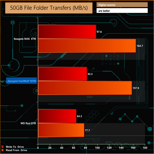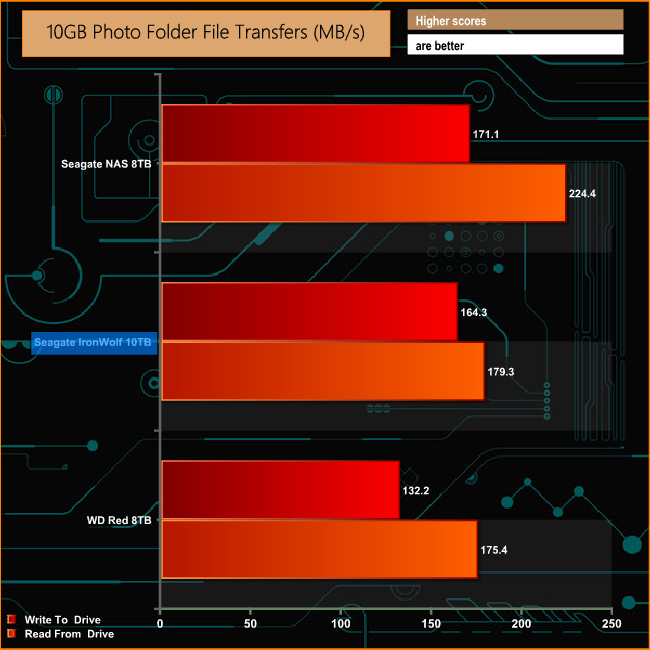 With only six discs to read and write to, the Seagate NAS 8TB is faster than its larger 10TB sibling with seven discs across all the real life tests.