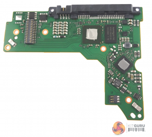 The two angled silver units at the ends of the PCB are the rotational Vibration (RV) sensors that protect the drive against any damage caused by the vibration that is set up in the larger multi-bay NAS enclosures.