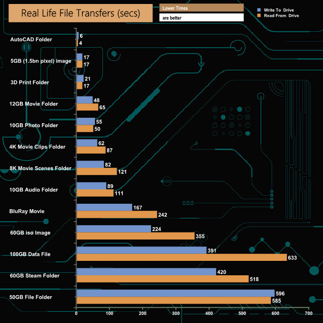The IronWolf Pro 18TB drive had no problems dealing with any of our real-life file transfers apart from the 100GB data file transfer, where the read time was a bit slow and the 50GB File Folder transfer, although to be fair to the drive, this is the one test that nearly all drives slow down for.