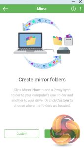 Create folders on your Ultra Touch drive that are synced to folders on your PC or Mac. Updating the files in one folder will automatically be updated on the other. It also allows pause/resume of any mirror plan.