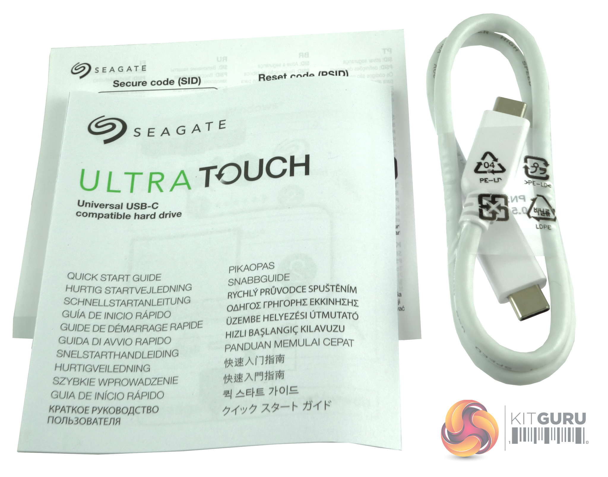 Bundled with the drive is a USB 3.0 cable, a Getting Started guide and an 8-character secure code (SID) to enable password protection for the drive.
