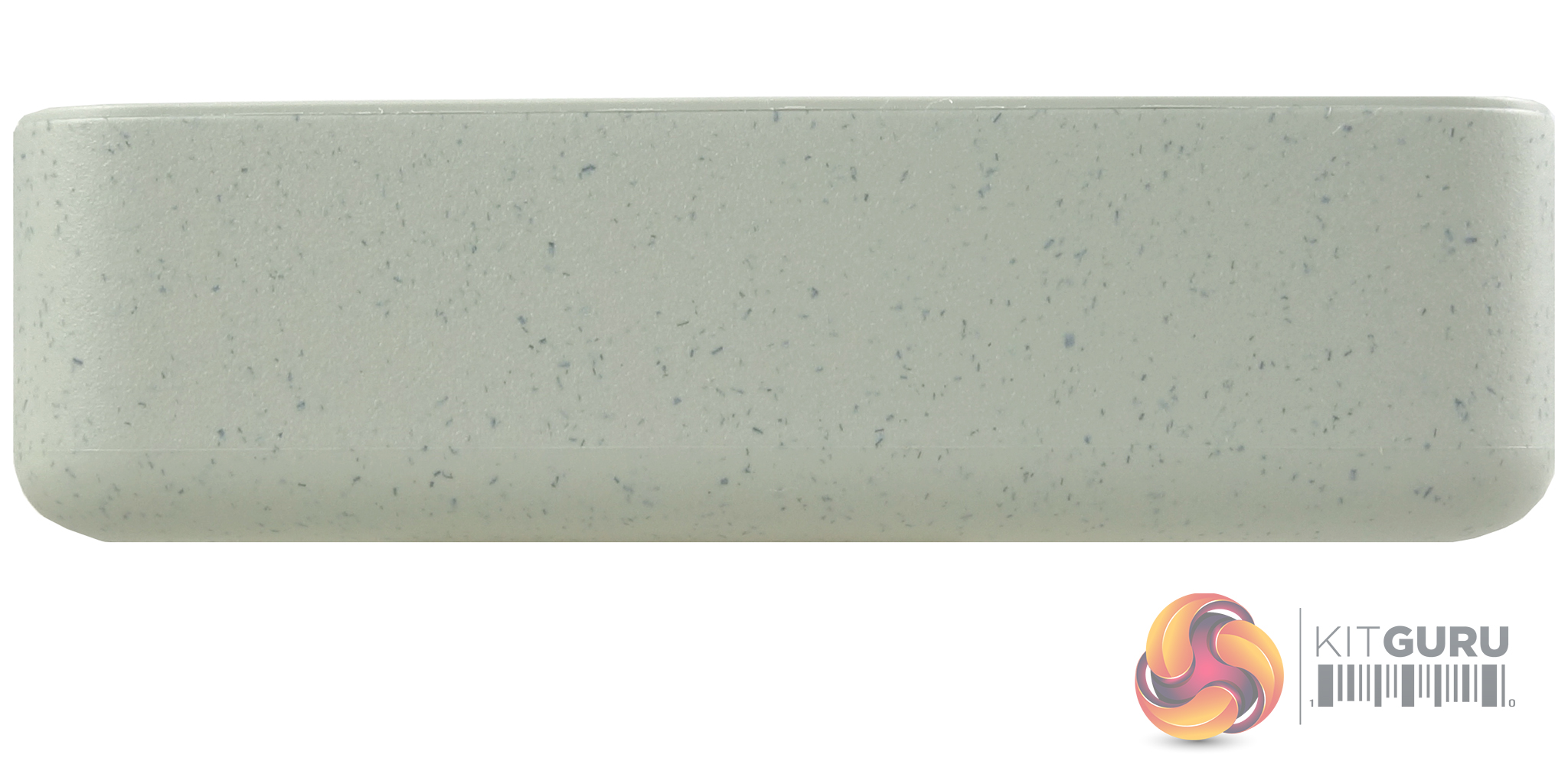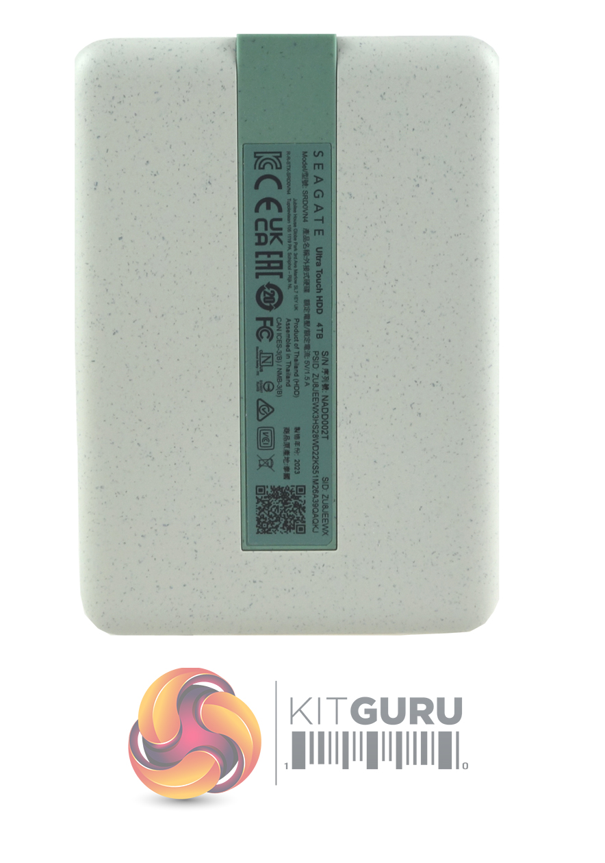 The 4TB Ultra Touch HDD uses a plastic enclosure and weighs in at 267g. Our review sample was finished in what Seagate calls Pebble Grey (there is also a Cloud White option). The Seagate logo on the top front of the drive is embossed on a green plastic centre section that continues down to very nearly the whole length of the back of the drive.