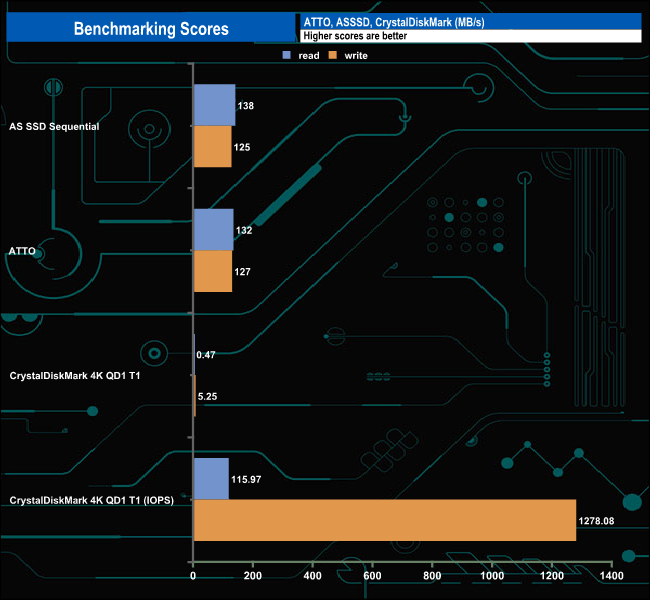 AS SSD is a great free tool designed just for benching Solid State Drives. It performs an array of sequential read-and-write tests, as well as random read-and-write tests with sequential access times over a portion of the drive. AS SSD includes a sub suite of benchmarks with various file pattern algorithms but this is difficult in trying to judge accurate performance figures.