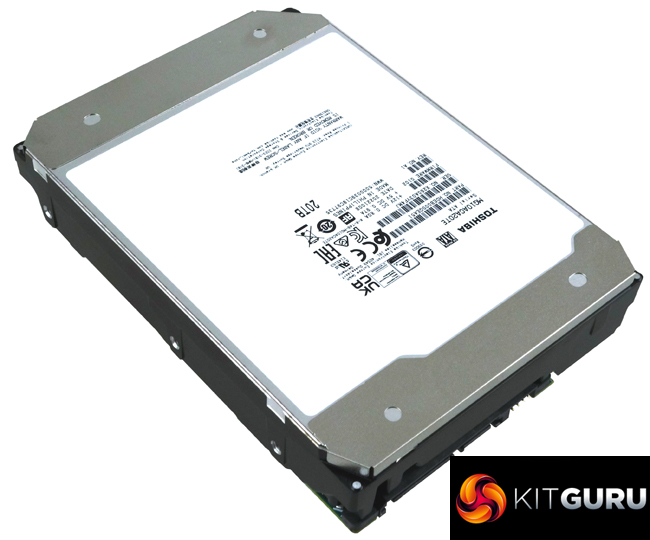 The 20TB Toshiba MG10 (MG10ACA20TE) is the latest flagship drive for the MG product line, taking over from the 18TB drive. The three-capacity MG10 product line is completed by a 16TB entry model. The 20TB drive uses Toshiba's fourth-generation ten disk / twenty head platform, using 2TB platter technology. It has a spindle speed of 7,200rpm and a 512MB cache. Toshiba quote a maximum sustained transfer rate of 268MB/s for the drive.