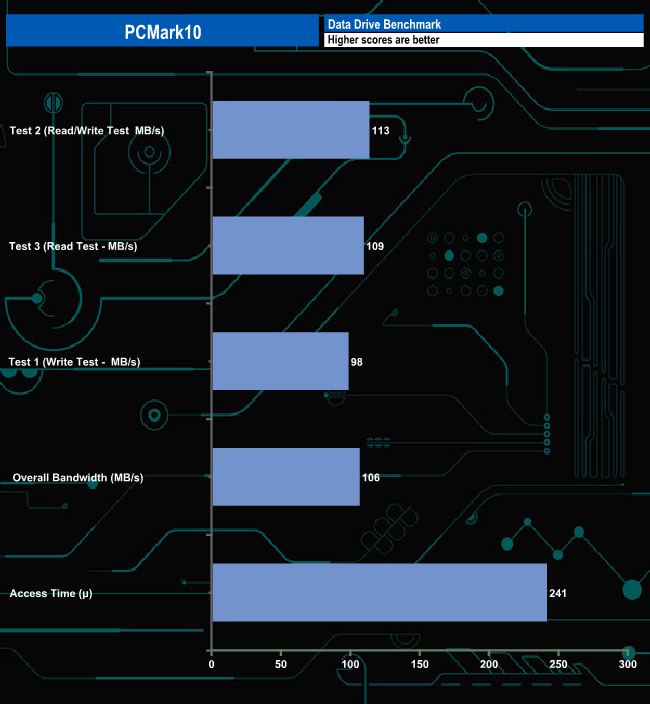 The PCMark 10 Data Drive Benchmark has been designed to test drives that are used for storing files rather than applications. You can also use this test with NAS drives, USB sticks, memory cards, and other external storage devices.