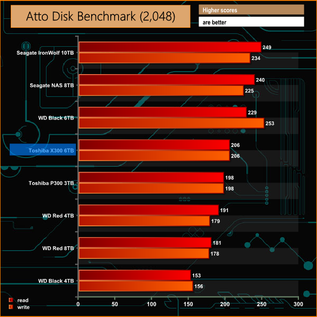 With both the Toshiba drives having a 7,200rpm spin speed there's not much to choose between the P300 and the X300 in terms of outright Sequential performance.