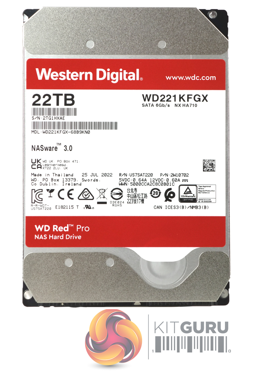 WD’s 22TB Red Pro is built on a standard 3.5in footprint but with a height of 26.1mm to accommodate the number of disks and actuators the drive uses. The drive has a spindle speed of 7,200rpm and there is an impressive 512MB of cache.