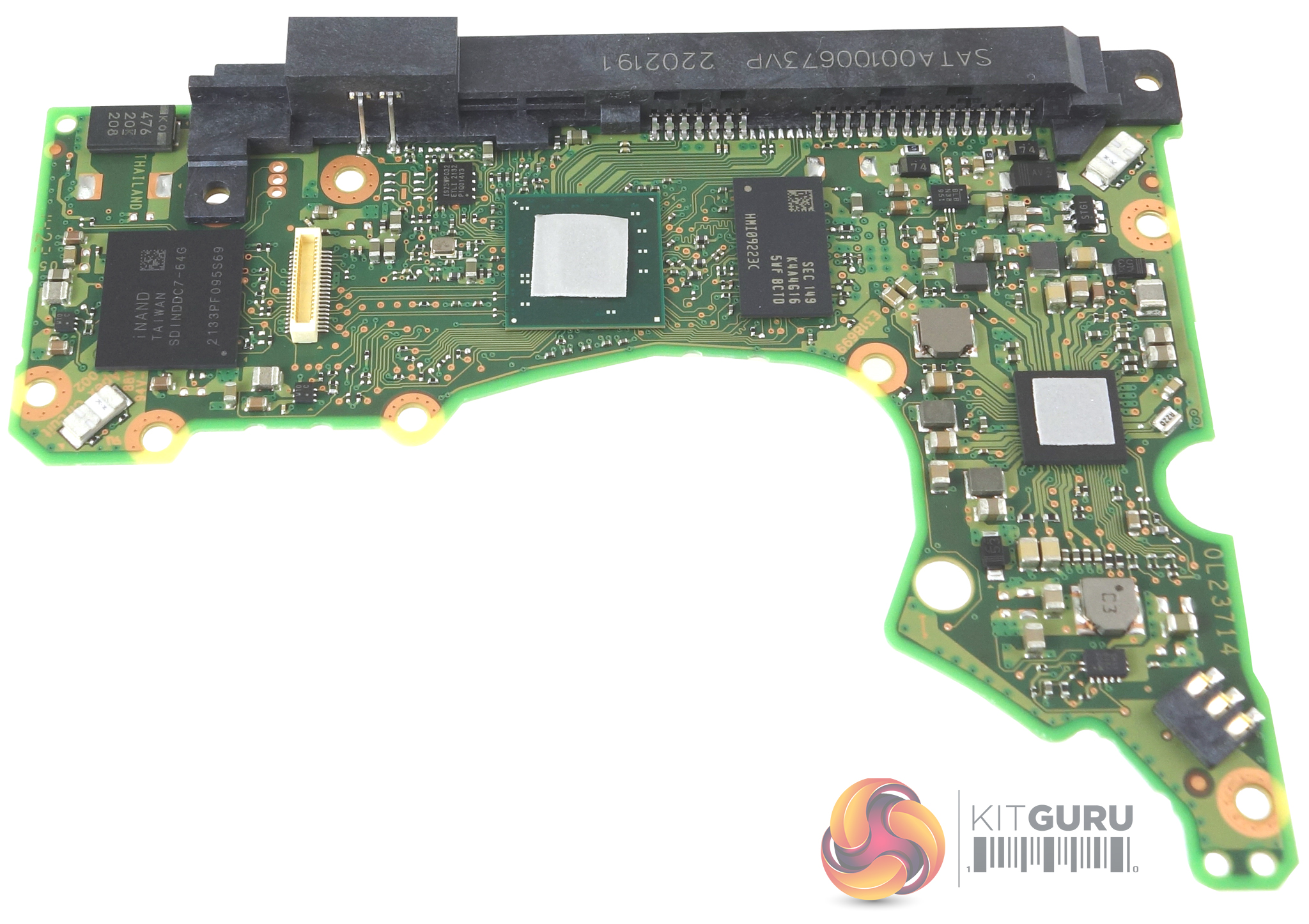 The 22TB Red Pro uses OptiNAND technology. OptiNAND technology is a flash-enhanced drive technology developed by WD that integrates an iNAND UFS embedded flash drive (EFD), using 3D NAND, that sits on the hard drive PCB. It's the large chip on the far left of the PCB in the image above. The NAND isn't used to store user data as per the hybrid drives of the past, but instead is used to store the self-generated drive metadata instead of holding it on the disks themselves, freeing up more usable space.