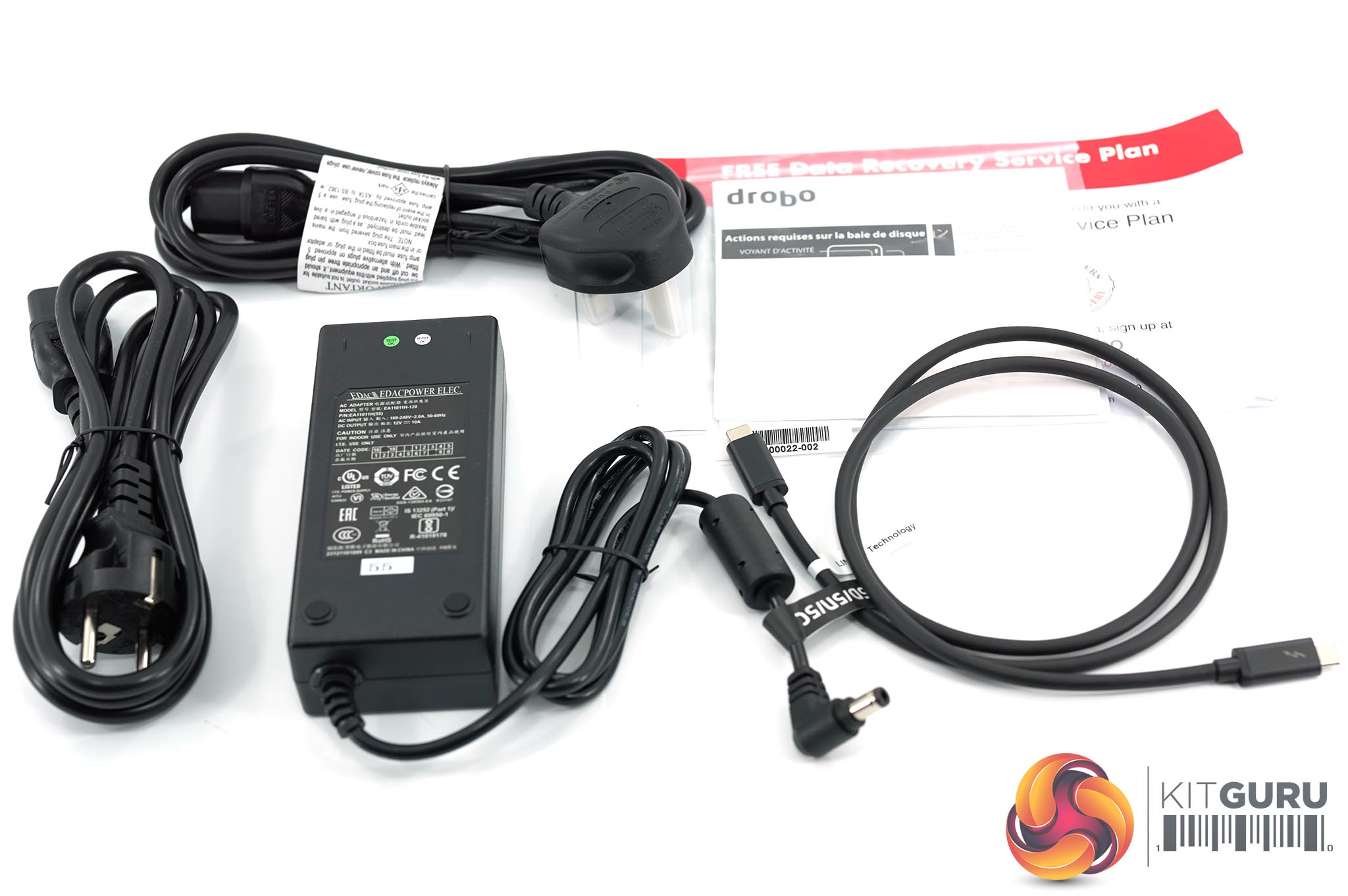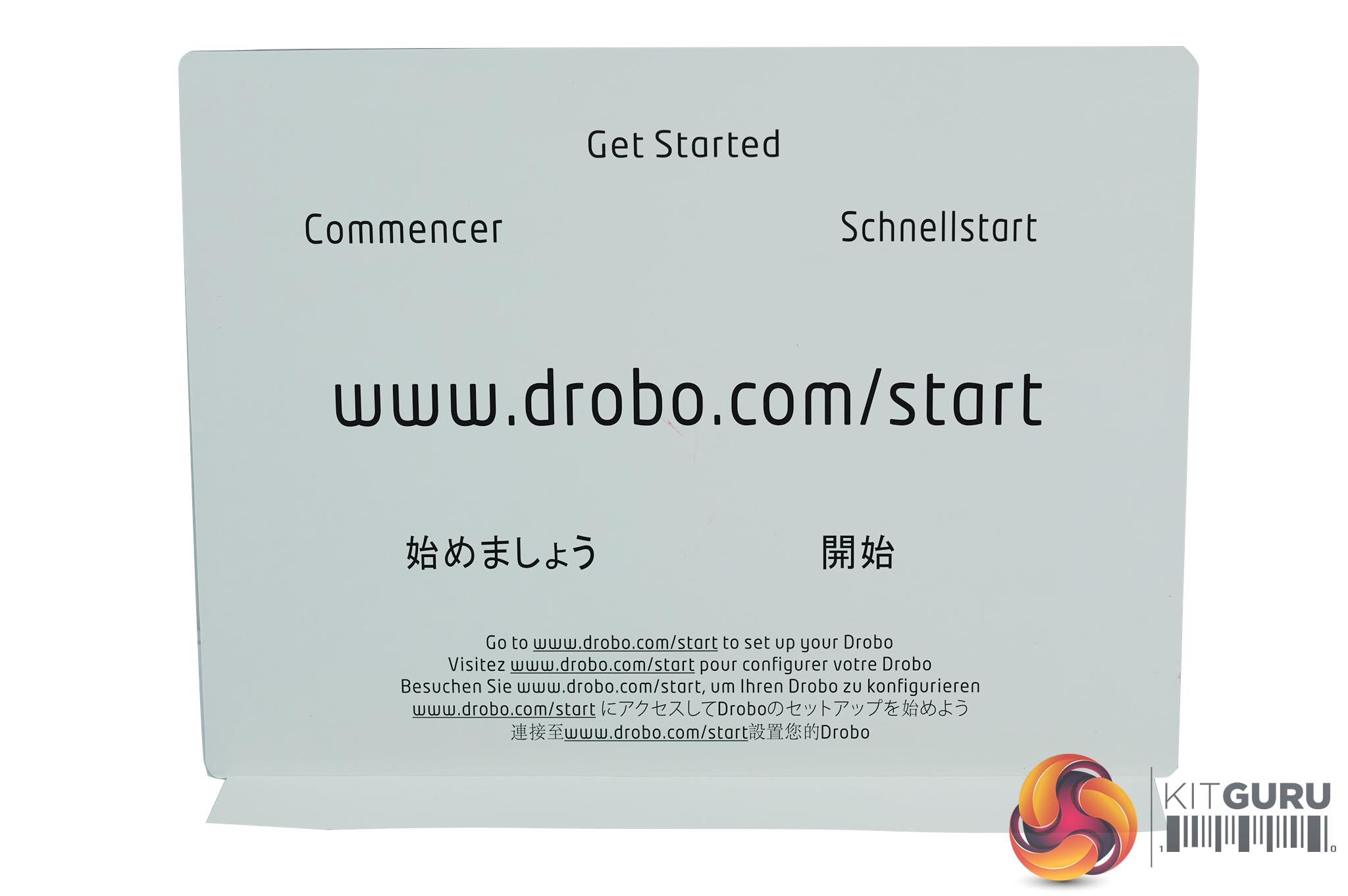 The Drobo 5D3 ships inside a large white box with some high resolution images and specifications of the DAS on the sides. The front of the box shows an ‘actual size' photograph of the product itself. Not much use to anyone buying it online, but ideal for someone in a store.