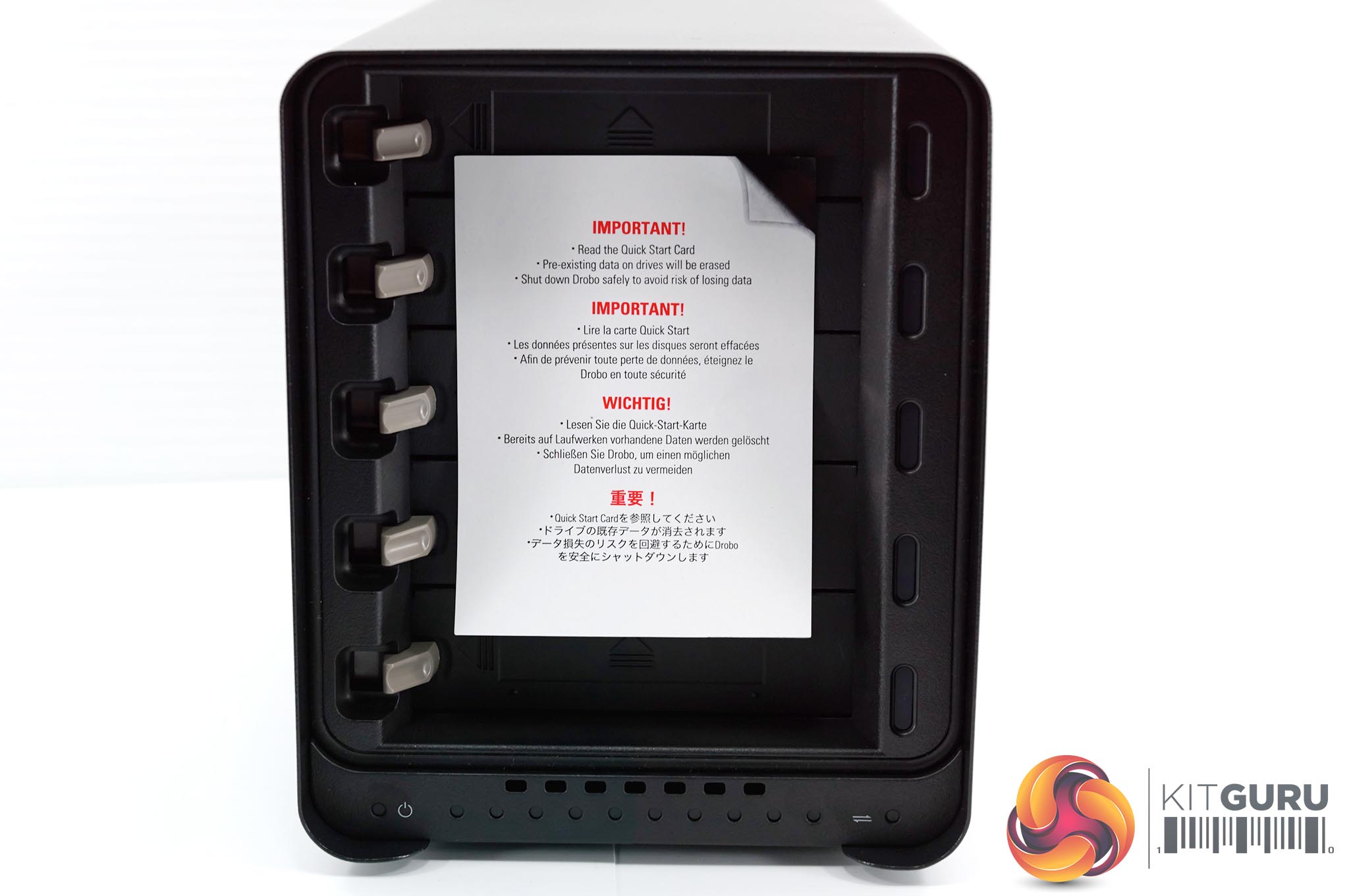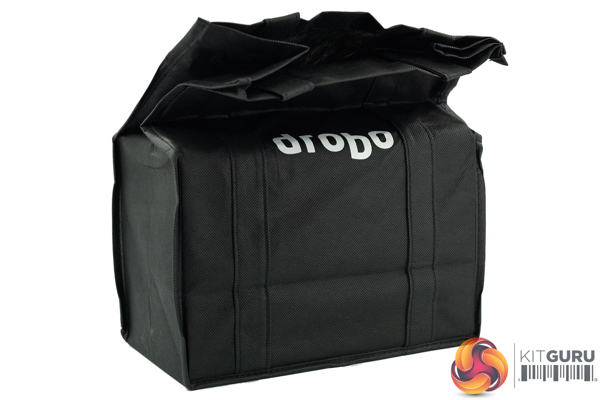 The Drobo 5D3 is securely shipped between two substantial pieces of hard foam, and it is encased inside a branded (and reusable) felt bag. Full marks to Drobo for ensuring the user won't end up with a damaged unit – other companies should really take note on the quality of the packaging.