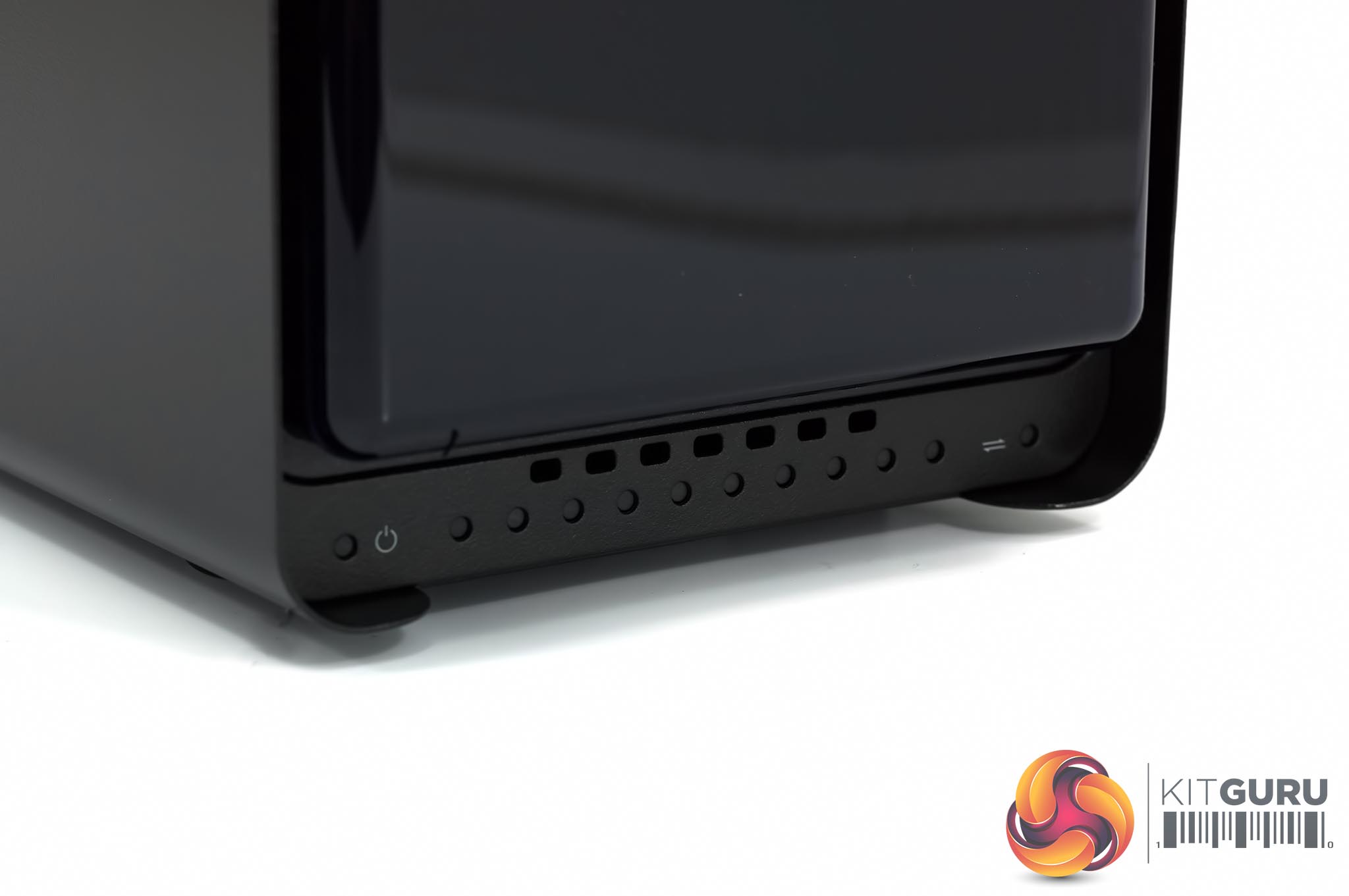 As more space is used, more of these lights will glow blue. When they are all full, one of the drive bay LEDs will indicate that a blank bay should have a drive fitted, or that one of the already occupied bays needs a larger drive installed.