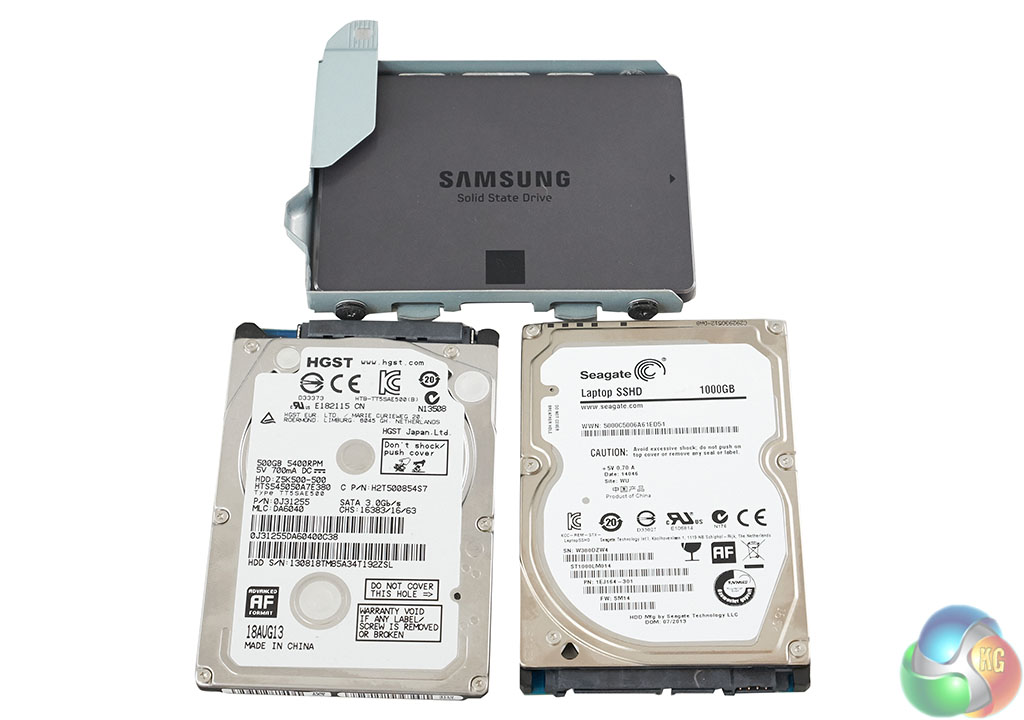The three drives on test today (image above). The 500GB mechanical drive included with the Playstation 4 is a 500GB HGST (Hitachi Global Storage Technologies) unit. Hitachi are now owned by Western Digital and sadly (but as expected) is a slower 5,400 rpm drive. It may seem fair enough that companies such as Sony and Microsoft save some money by incorporating 5,400 rpm drives in these consoles, but in such massive bulk orders a 7,200 rpm drive would really only cost them a few pence extra … per console.