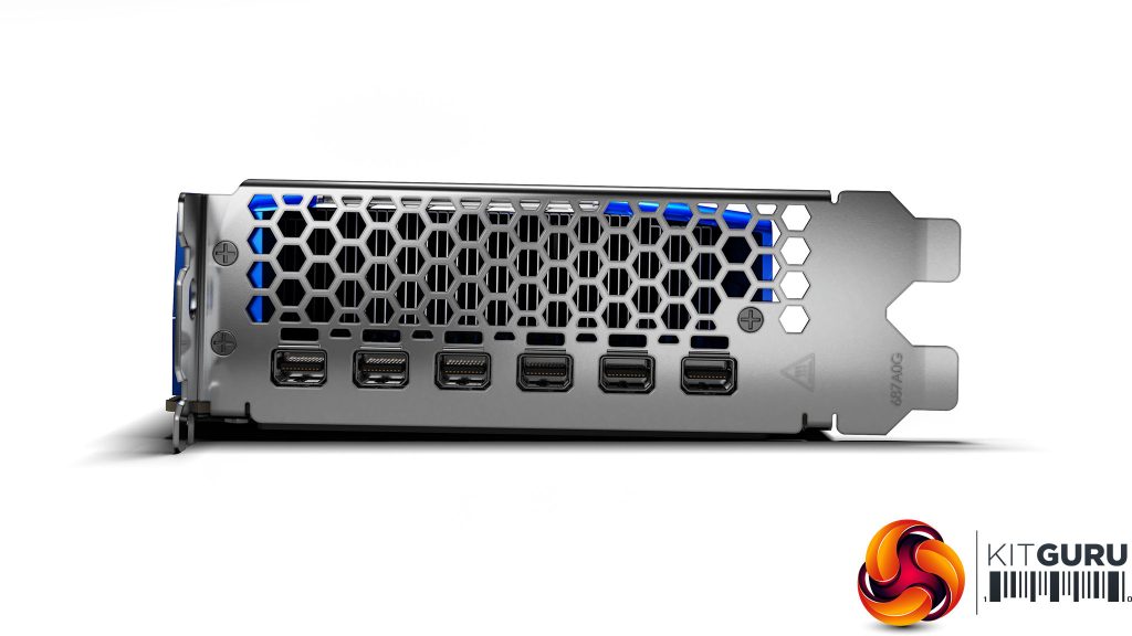 With such a huge amount of memory on board, you would expect the W6800 to support very large monitor resolutions. Like the W5700, Mini-DisplayPort connections are employed to enable six of them in a row. Each of these can support displays up to 5K at 60Hz, so you could create a six-monitor wall 15K across and two screens high. Two 8K (7,680 x 4,320) screens can be supported at once, too. All the Mini-DisplayPort connections are 1.4 level.