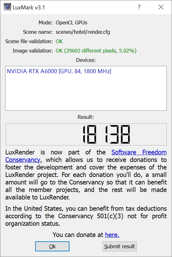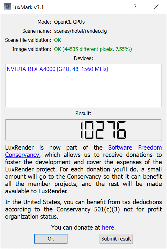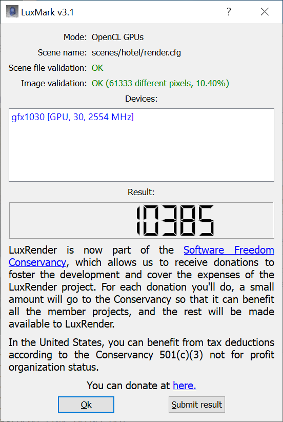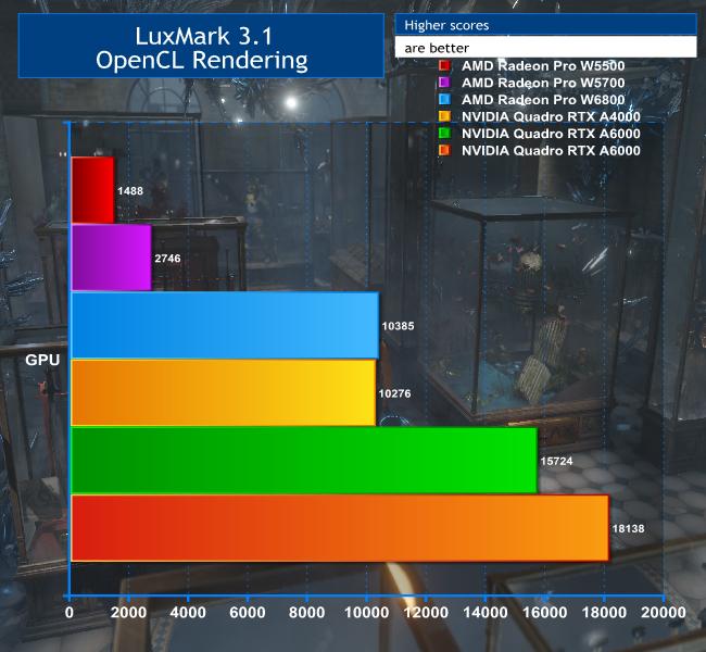 A popular tool for testing OpenCL performance is LuxMark. We rendered the most gruelling Hotel Lobby scene.