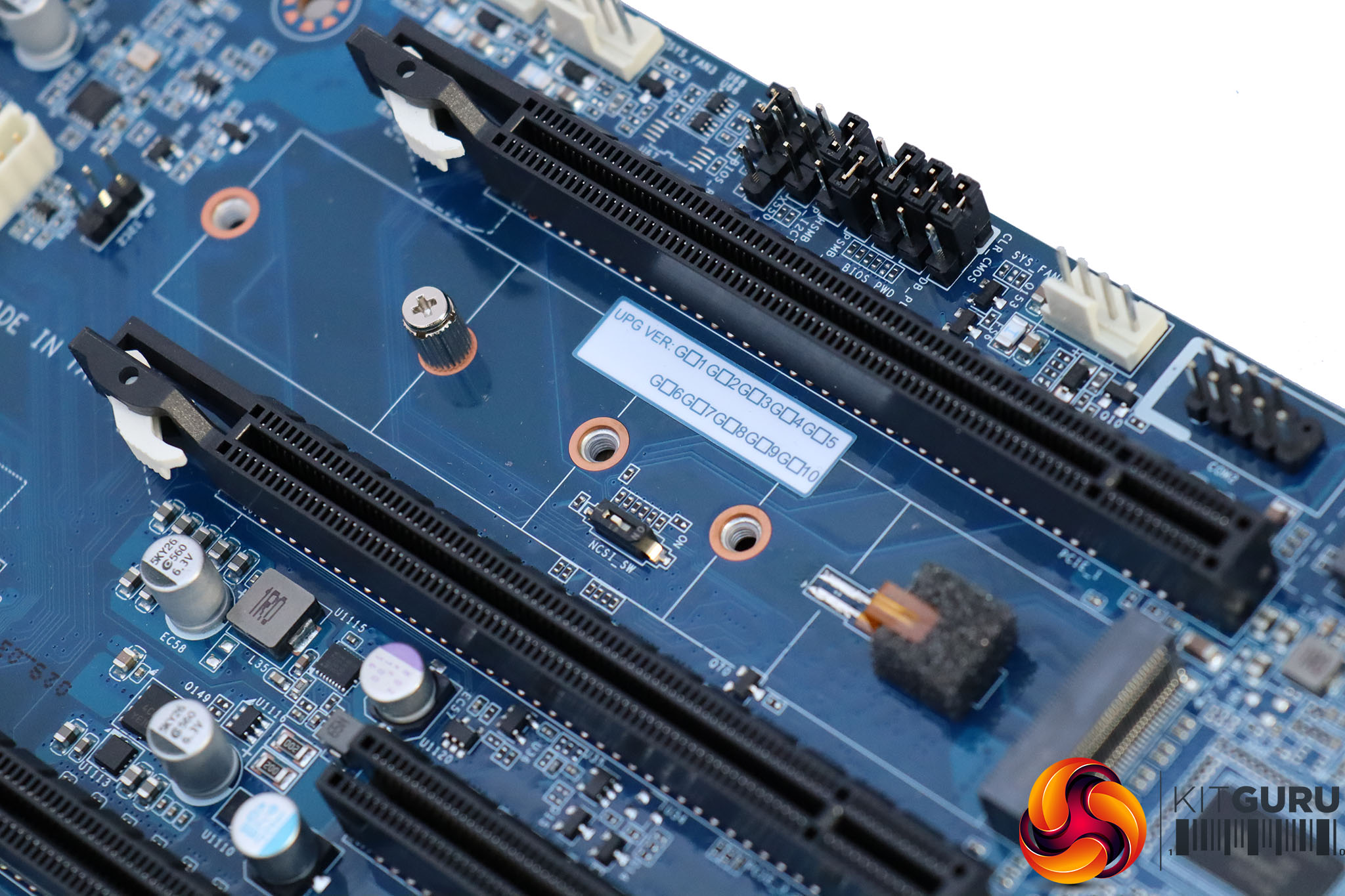 The eight DIMM slots sit four on each side of the CPU socket. These support DDR4 RDIMMs up to 64GB and LRDIMMs up to 128GB, which seems a bit small for a server-oriented motherboard. The maximum frequency is 2,666MHz, and you will want to populate all of them to take advantage of the eight-channel memory controller. So you will probably want to go for the maximum from the word go, as upgrading will require replacement of the entire complement.