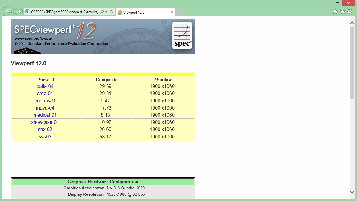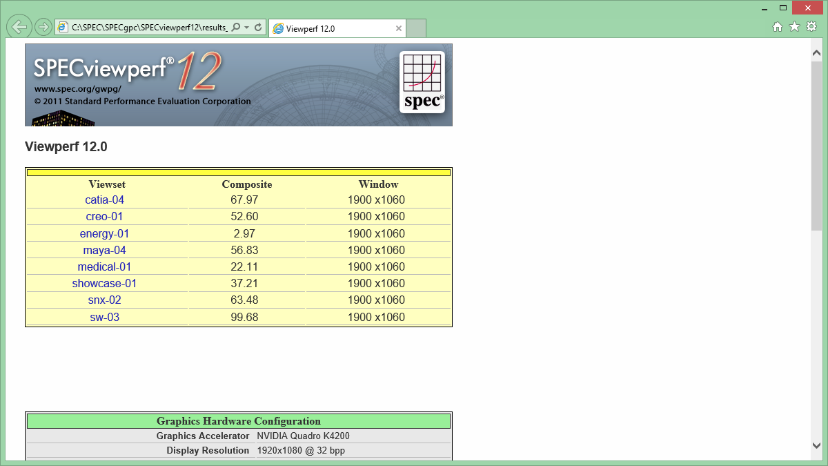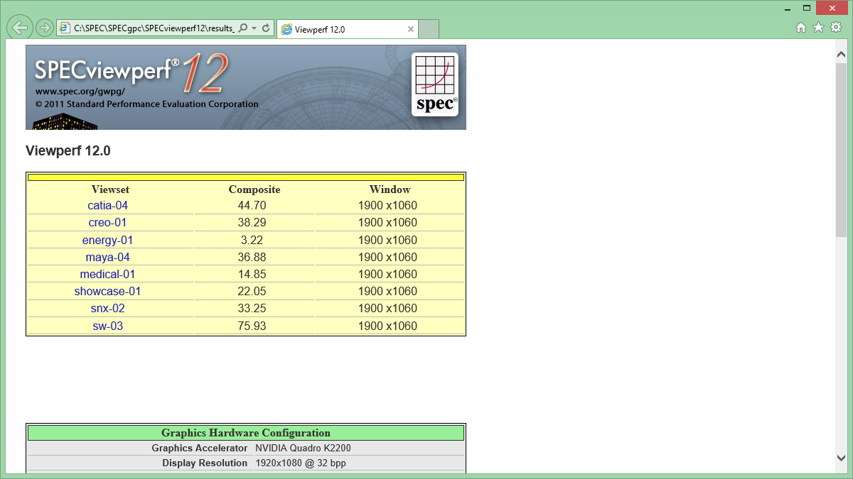 For this second article, we are focusing our attention on the SPECviewperf test from the Standard Performance Evaluation Corporation. SPECviewperf 12 is the worldwide standard for measuring graphics performance, and is based on professional applications. The latest version is SPECviewperf 12.0.2, which extends performance measurement from physical to virtualized workstations. SPECgpc members at the time of V12.0.2 release include AMD, Dell, Fujitsu, HP, Intel, Lenovo, Micron and NVIDIA. SPECviewperf 12 measures the 3D graphics performance of systems running under the OpenGL and Direct X application programming interfaces. The benchmark’s workloads, called viewsets, represent graphics content and behavior from actual applications.