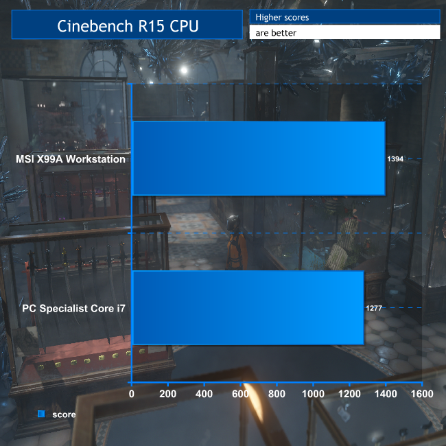 Unsurprisingly, although the six cores running at 4.4GHz in the PC Specialist system provide great rendering performance, the ten cores running at 2.4GHz in the MSI X99A Workstation's Xeon are better. The ten-core Broadwell-E Core i7-6950X that this board also supports would certainly blow either out of the water, however.