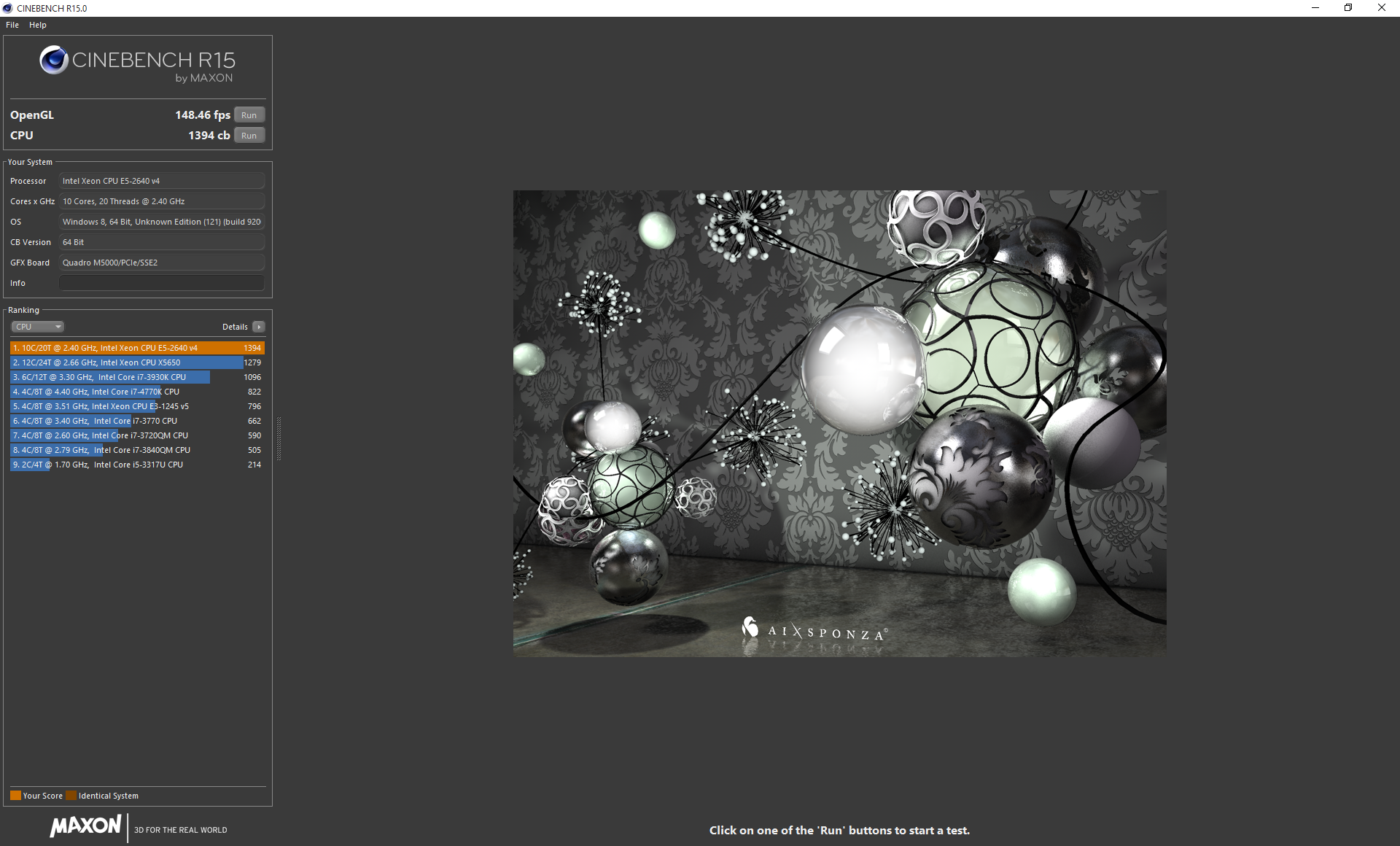 CINEBENCH R15 is a cross-platform testing suite that measures hardware performance and is the de facto standard benchmarking tool for leading companies and trade journals for conducting real-world hardware performance tests. With the new Release 15, systems with up to 256 threads can be tested.