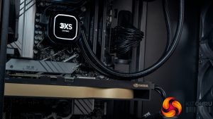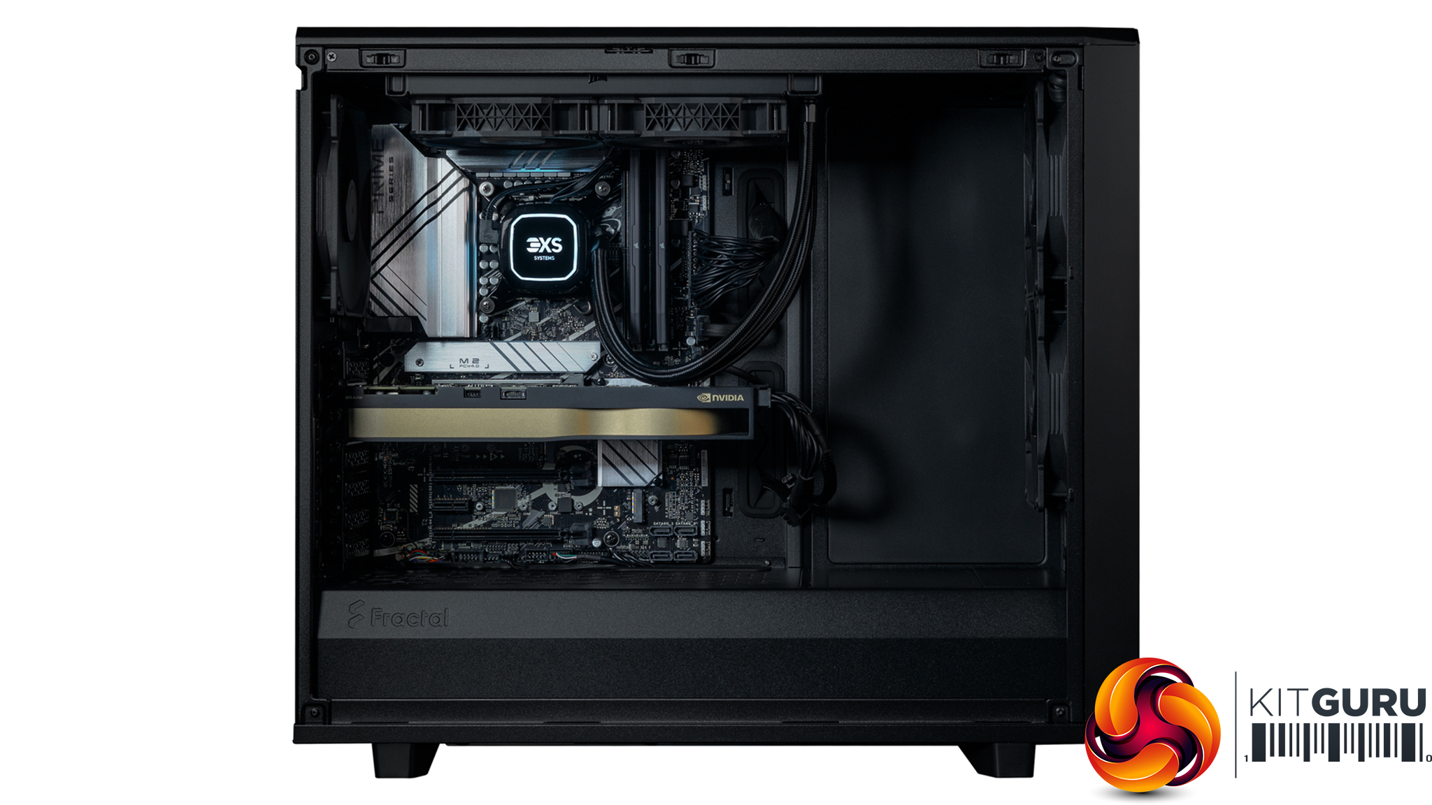 Scan has installed the CPU and RAM on an ASUS Z790-P WiFi motherboard in a Fractal Design Meshify 2 chassis with custom 3XS front panel. This is a sturdy case with loads of space inside, which is assisted by the neat Corsair H100i Pro XT water cooling loop. Scan has only included a single storage device, but it's a super-fast 2TB Samsung 980 Pro M.2 NVMe SSD running at PCI Express 4.0 speed, which is supported by the latest Intel processors.